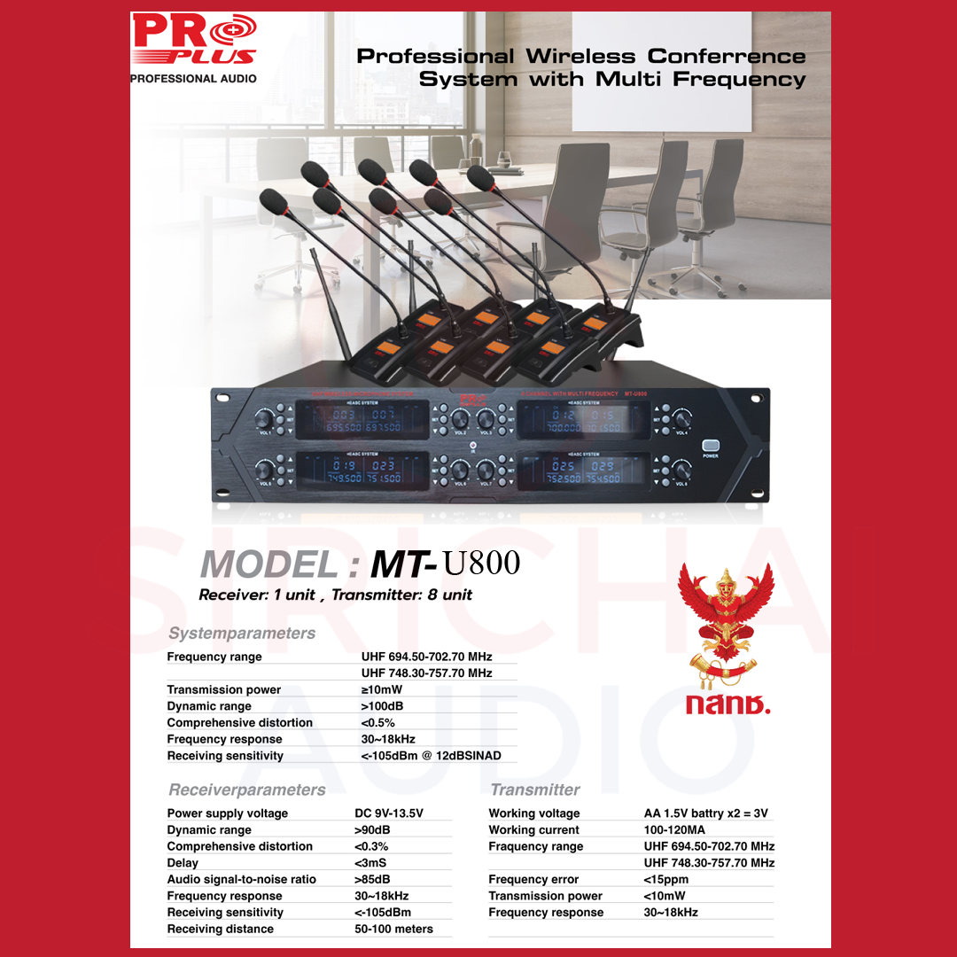 ไมค์ประชุมไร้สาย PROPLUS รุ่น MT-U800 (ชุด8ท่าน)