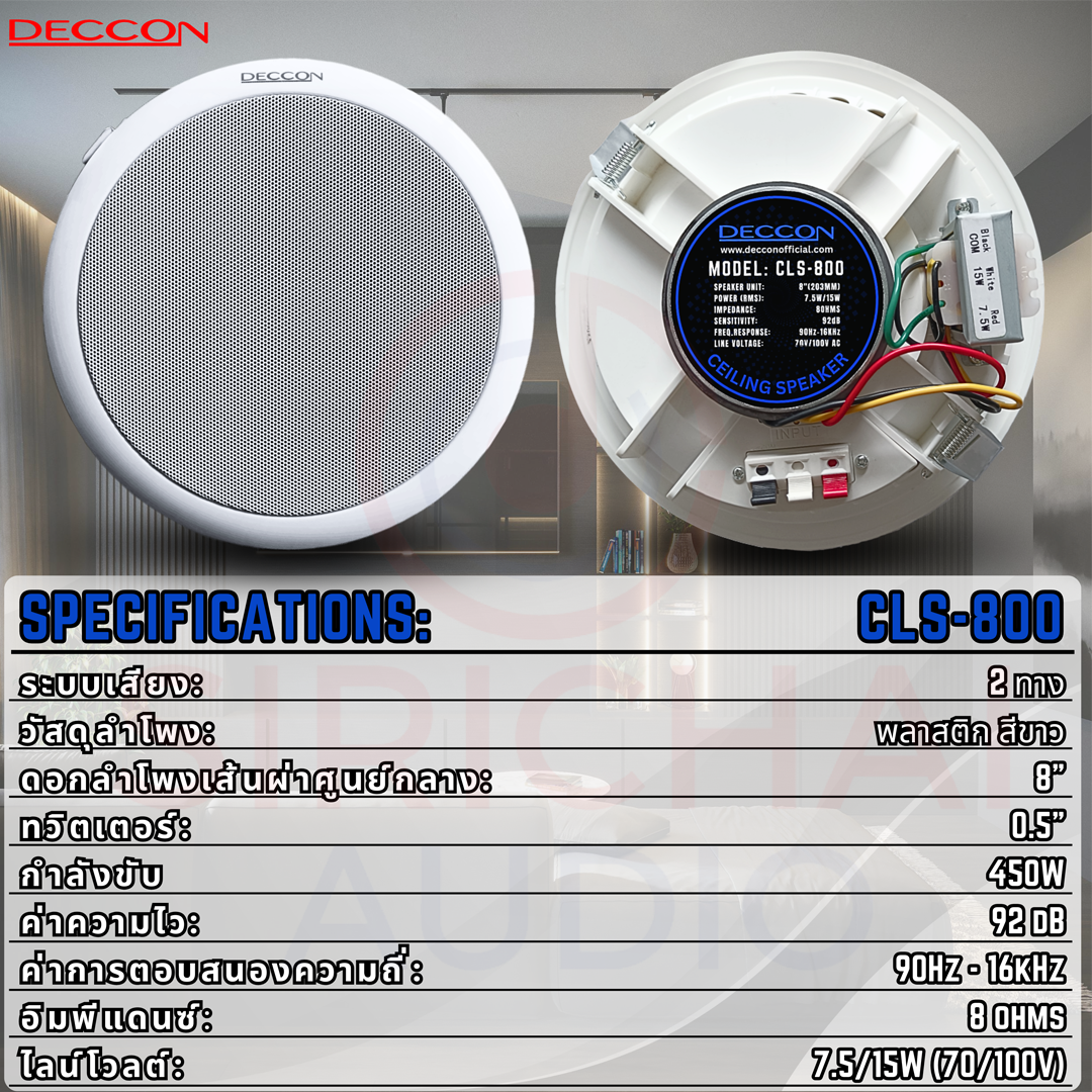 ลำโพงติดเพดาน8นิ้ว450วัตต์92Db90hz - 16Khzใช้ได้ทั้ง Line ลาย์ และ 8โอห์ม