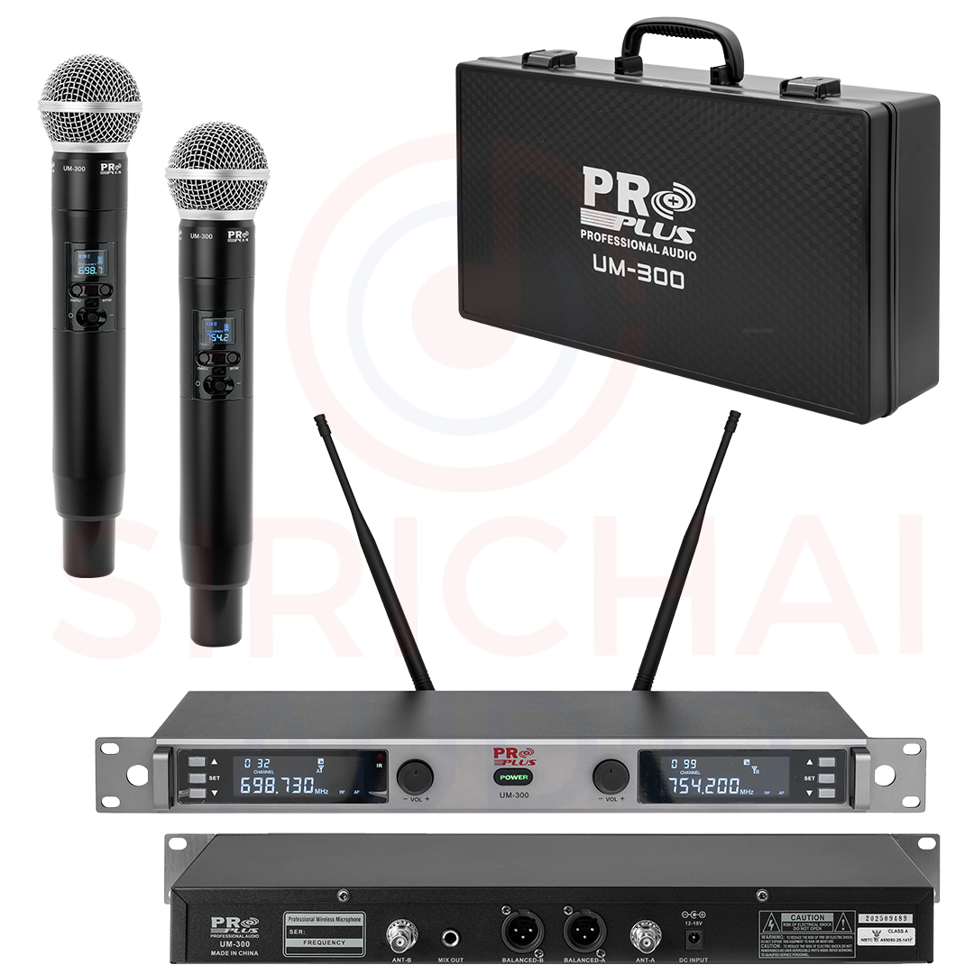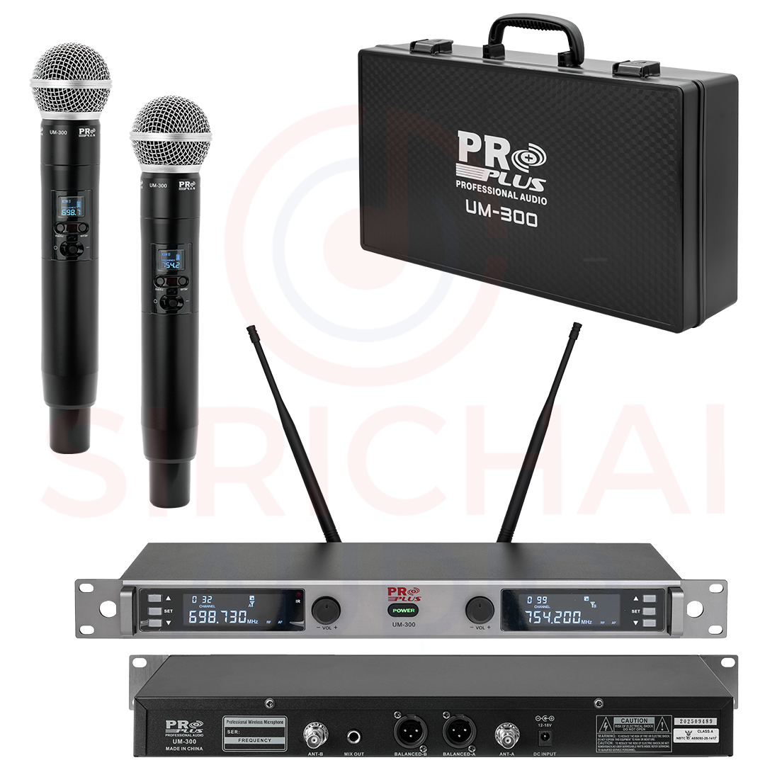 ไมค์ลอย PROPLUS รุ่น UM300 ไมโครโฟนไร้สายแบบคู่ ปรับความถี่