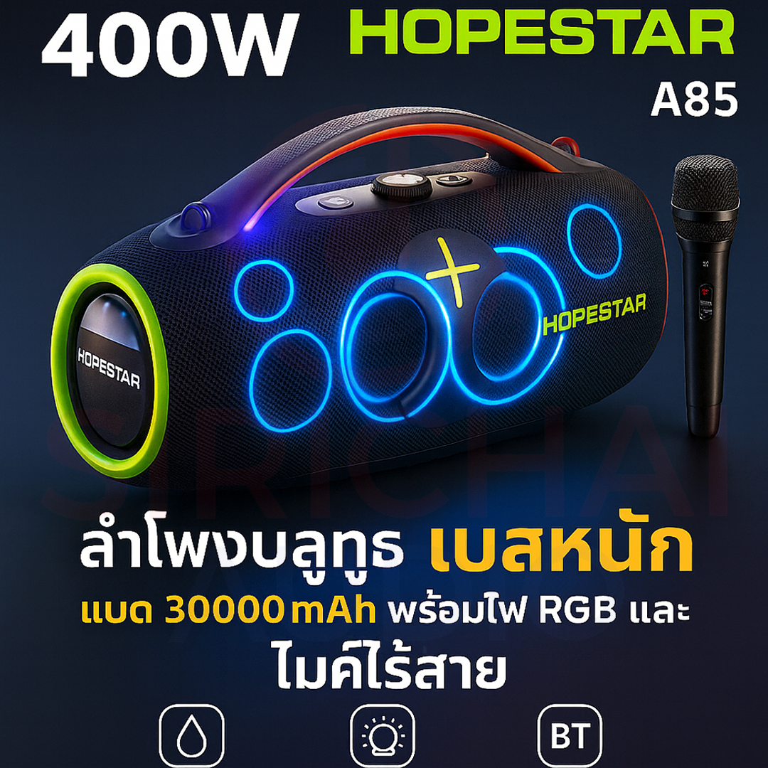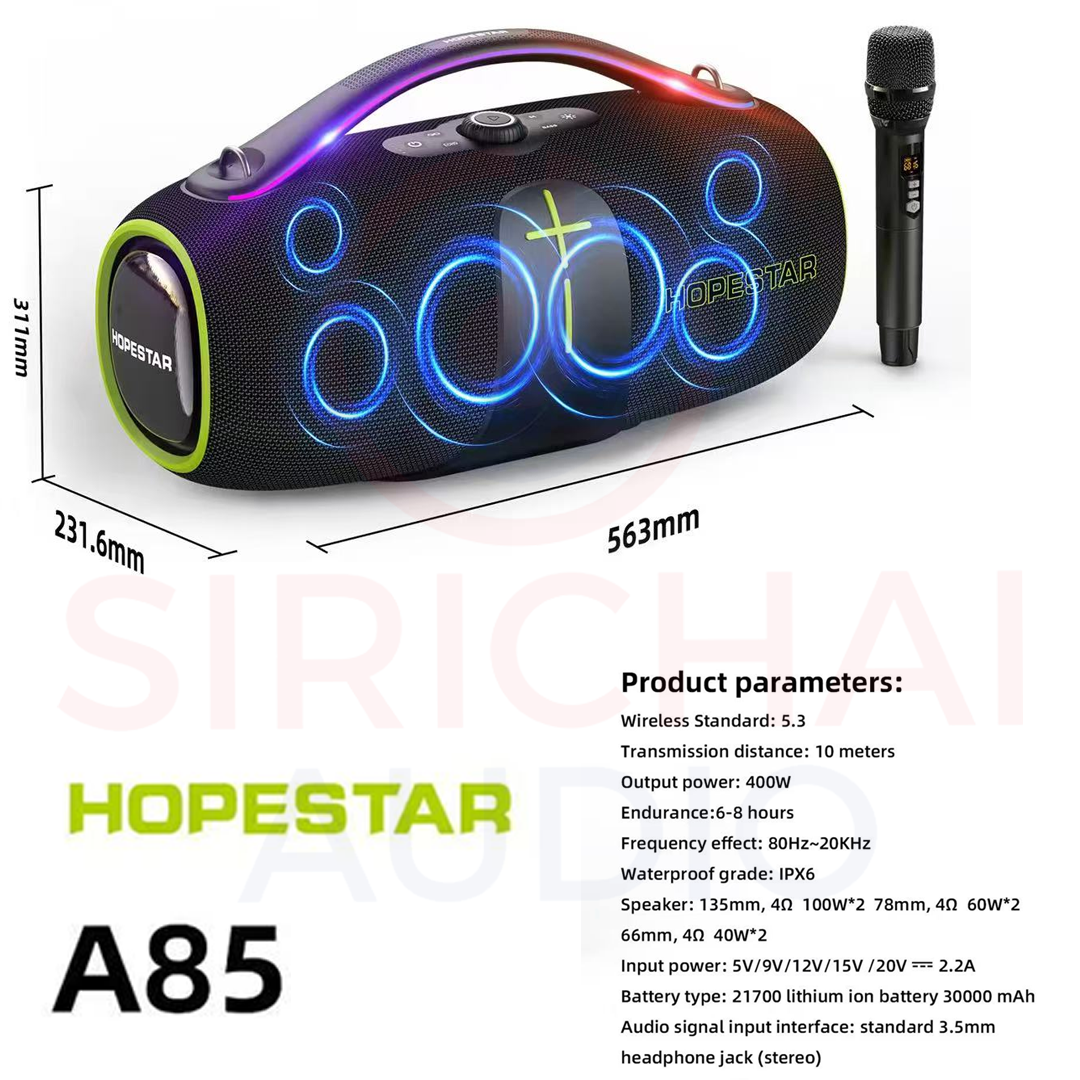 ลำโพงบลูทูธ HOPESTAR A85 400W เบสหนัก แบต 30000mAh พร้อมไฟ RGB และไมค์ลอย