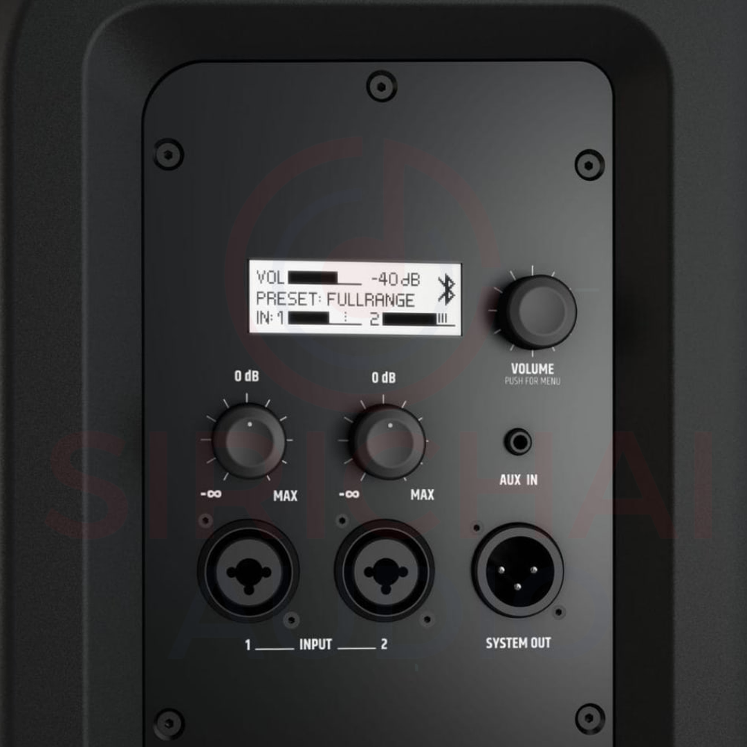 มาพร้อมช่องเชื่อมต่อ AUX IN สำหรับเชื่อมต่ออุปกรณ์เปิดเพลงภายนอก ผ่านสาย 3.5 mm. พร้อมช่อง Combo Jack Input และช่อง System Out สำหรับเชื่อมต่อไมค์สาย ลำโพงได้โดยตรง