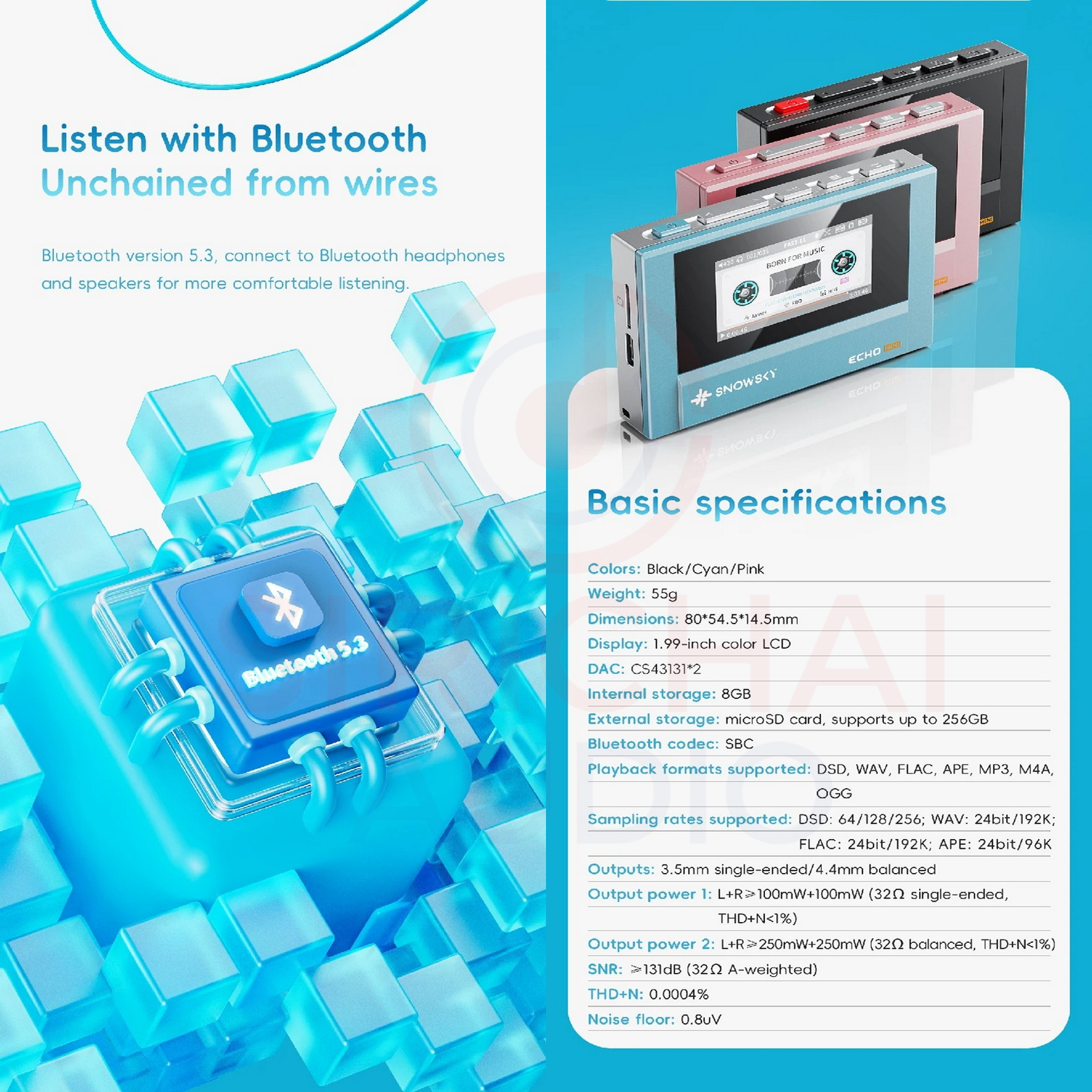 ECHO MINI เครื่องเล่นพกพา lossless ชิป Dual CS43131 รองรับ Hi-Res การกลับมา
