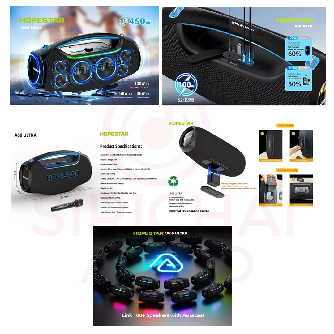 ไมค์ลอย1ตัว 450วัตต์ ลำโพง6ดอก ไฟRGB เบส3โหมด ระบบTWS