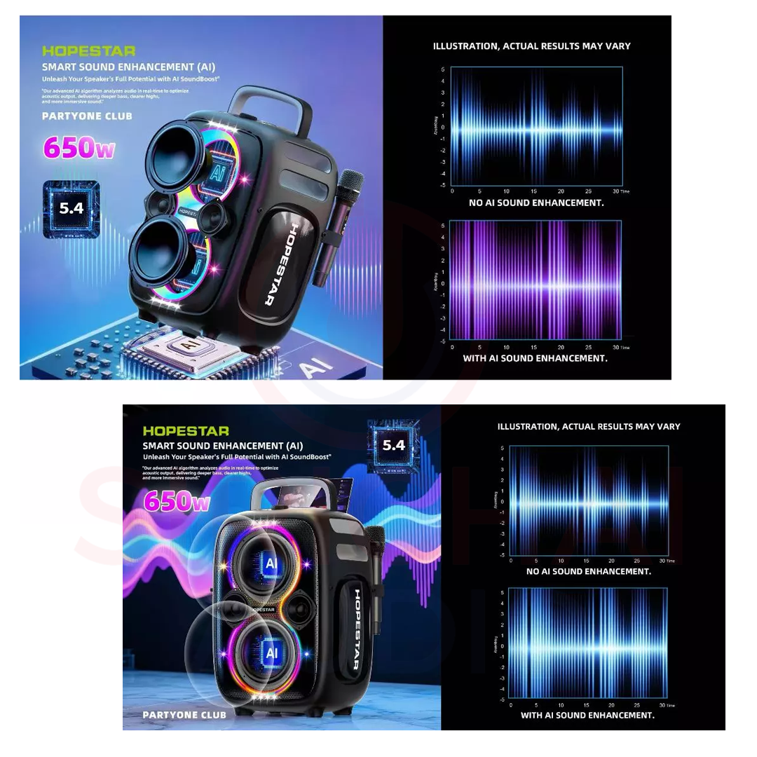 ลำโพงบลูทูธ Hopestar รุ่น Party One CLUB เสียงดีเบสแน่น 650W ดังกระหึ่ม ระบบAi เชื่อมTWS