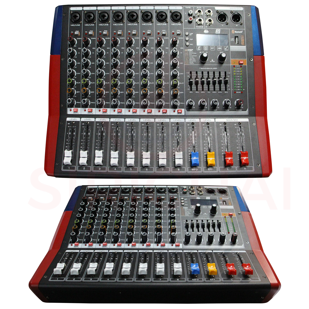 SYSTEM : 8 Ch Stereo Power Mixer with EQ, DSP Effect, USB MP3, Bluetooth, Rec