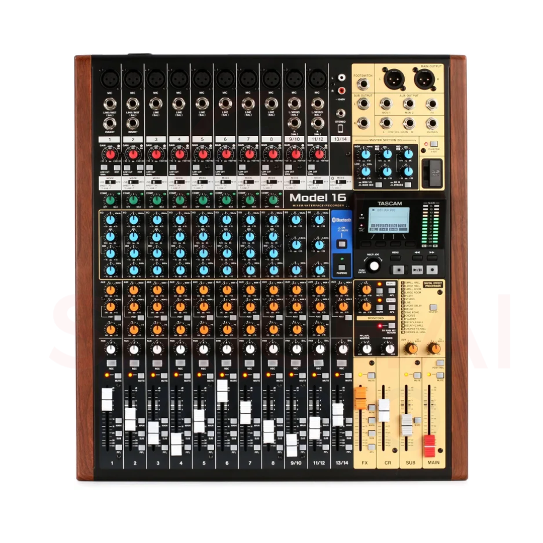 ไม่ว่าคุณจะใช้สำหรับการซ้อม การแสดงสด หรือการผลิตในสตูดิโอ TASCAM Model 16 เป็นโซลูชันการบันทึกหลายแทร็กที่ให้เสียงยอดเยี่ยมและใช้งานง่าย Model 16 มีการออกแบบสไตล์มิกเซอร์แอนะล็อกคลาสสิกที่ใช้งานง่ายและใช้งานได้ทันที ควบคุมได้อย่างแม่นยำด้วยเฟดเดอร์ 60 มม. ในขณะที่ปรับแต่งแทร็กของคุณด้วยการควบคุม EQ และ Aux ที่คุ้นเคย ปรีแอมป์คุณภาพสูงช่วยให้มั่นใจได้ถึงเสียงคุณภาพเยี่ยมที่สามารถบันทึกลงในการ์ด SD ภายในที่ความละเอียด 24 บิต/48kHz ได้อย่างง่ายดาย คุณยังได้รับส่วนเสริม I/O อีกด้วย ยิ่งไปกว่านั้น การรวม DAW เป็นเรื่องง่ายๆ ต้องขอบคุณอินเทอร์เฟซเสียงในตัว 16-in/14-out ของ Model 16 Model 16 มีน้ำหนักเบาแต่ทนทาน และสามารถเคลื่อนย้ายจากสตูดิโอหนึ่งไปอีกเวทีด้วยความมั่นใจ ด้วยความน่าเชื่อถือระดับตำนานของ TASCAM