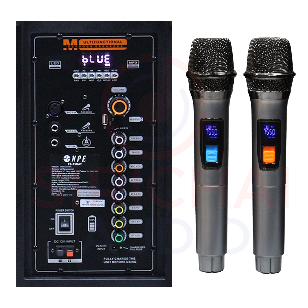 NPE TS-15BAT ลำโพงล้อลาก 15นิ้ว ไมค์ลอยคู่ ไฟRGB แบตเตอรีในตัว