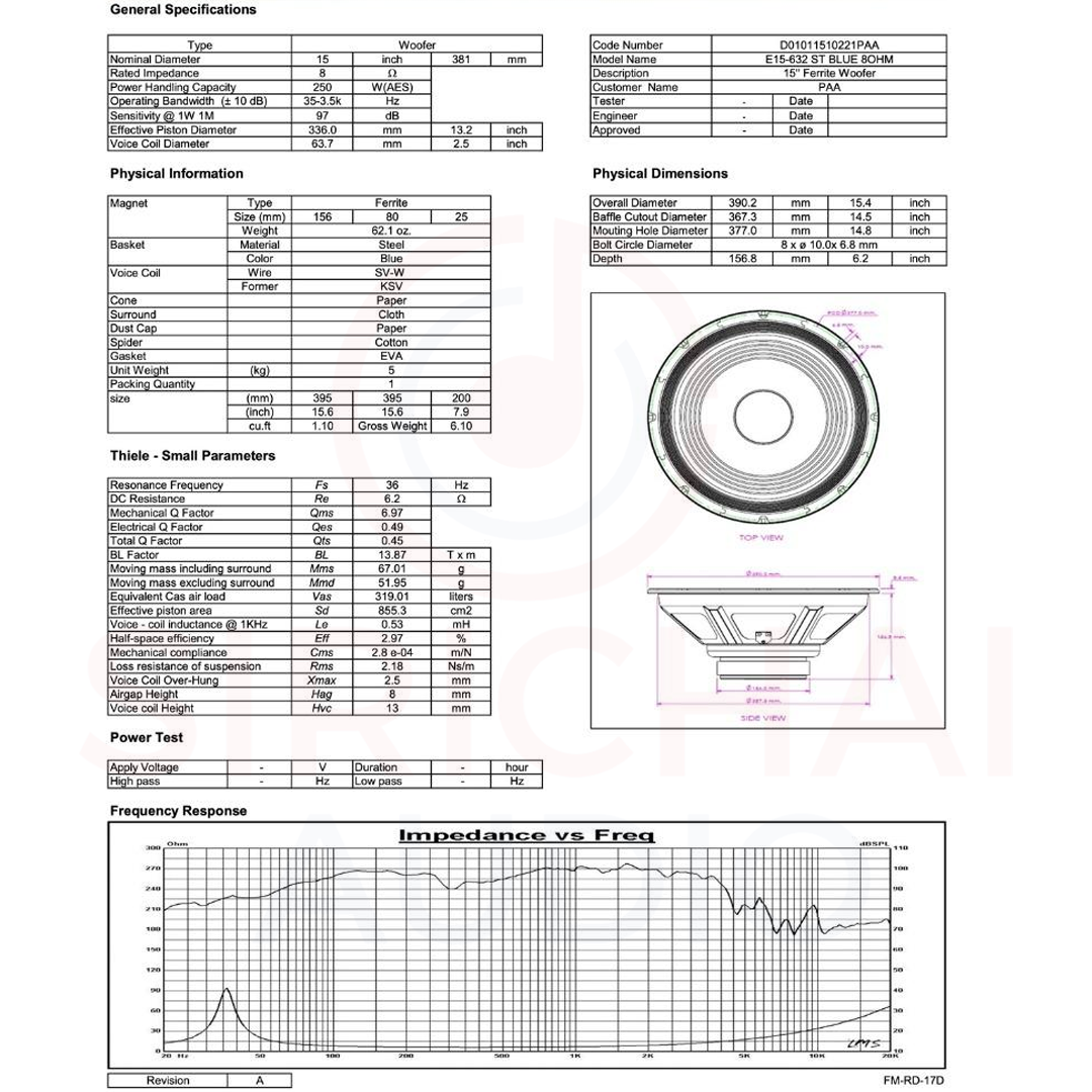 SPEAKER 15" E15-632 ST BLUE 8 OHM