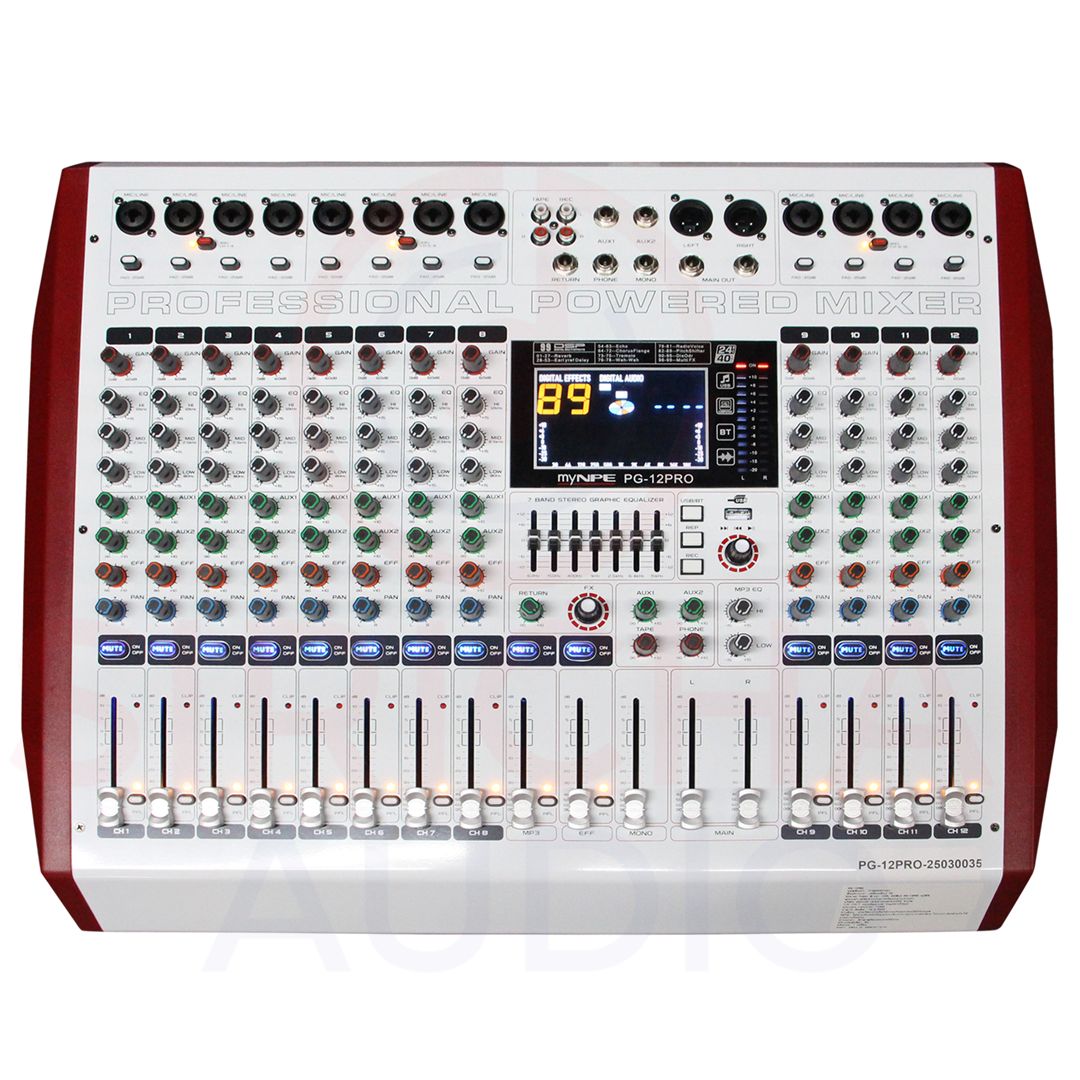 SYSTEM : 12 Ch Stereo Power Mixer with EQ, DSP Effect, USB MP3, Bluetooth, Rec